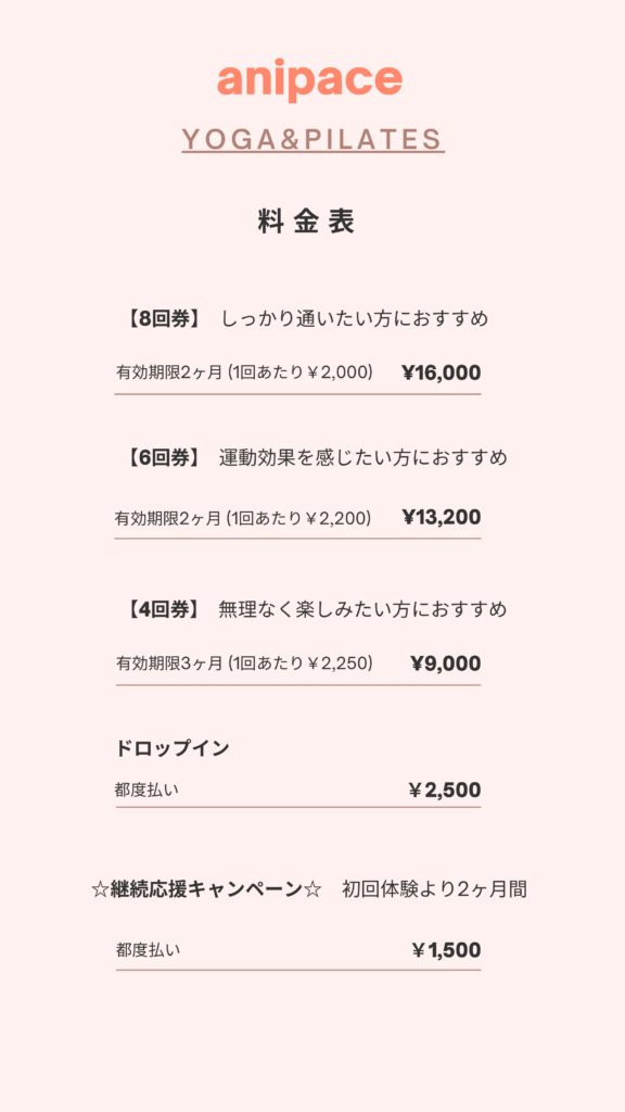 11月より始まるヨガ・ピラティスレッスンの料金についてお知らせです。
